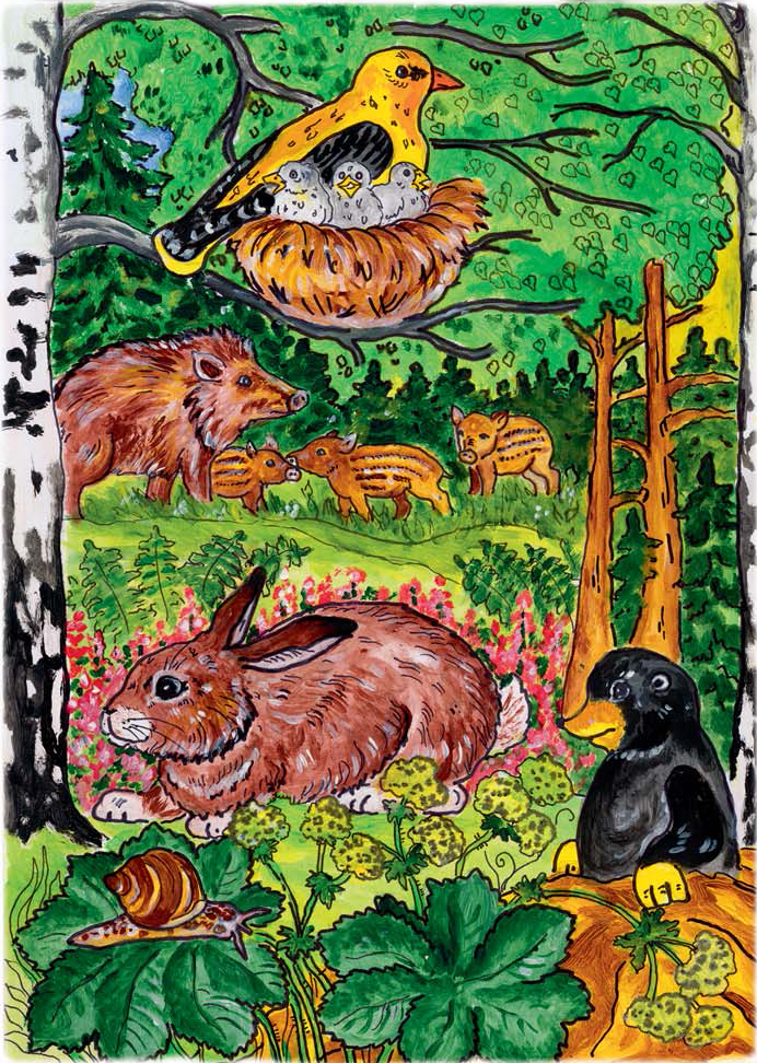 Linnukse säng om puuossa pääl. Sääl pehmen pesän kasvave sirgupoja. Emä võtt na üüses siiva ala ja tuul kussutes magame.